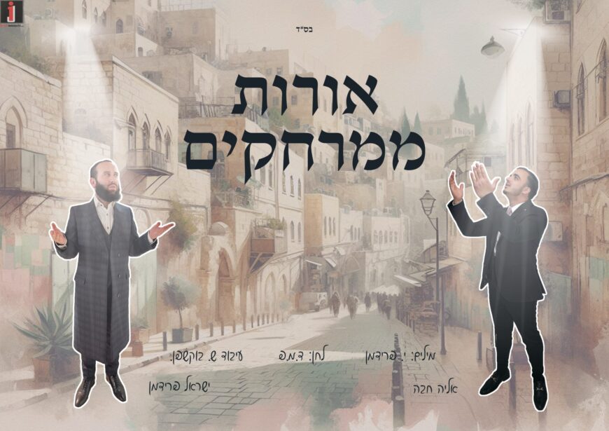 “Orot MiMerchakim” tells the story of the galus that has been going on for thousands of years and the troubles people face. Yisrael Friedman wrote the lyrics, with Shlomo Bookspan in charge of the arrangement and Dudi Bichler in charge of the production.