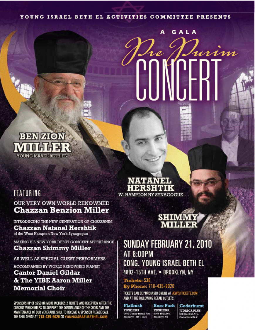 Young Israel Beth El presents A Gala Pre Purim CONCERT: Ben Zion Miller, Natanel Hershtik, Shimmy Miller
