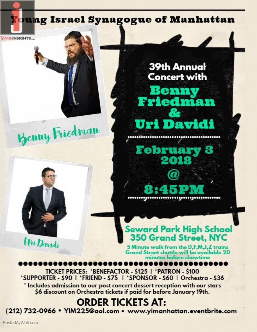Young Israel Synagogue of Manhattan – 39th Annual Concert with BENNY FRIEDMAN & URI DAVIDI